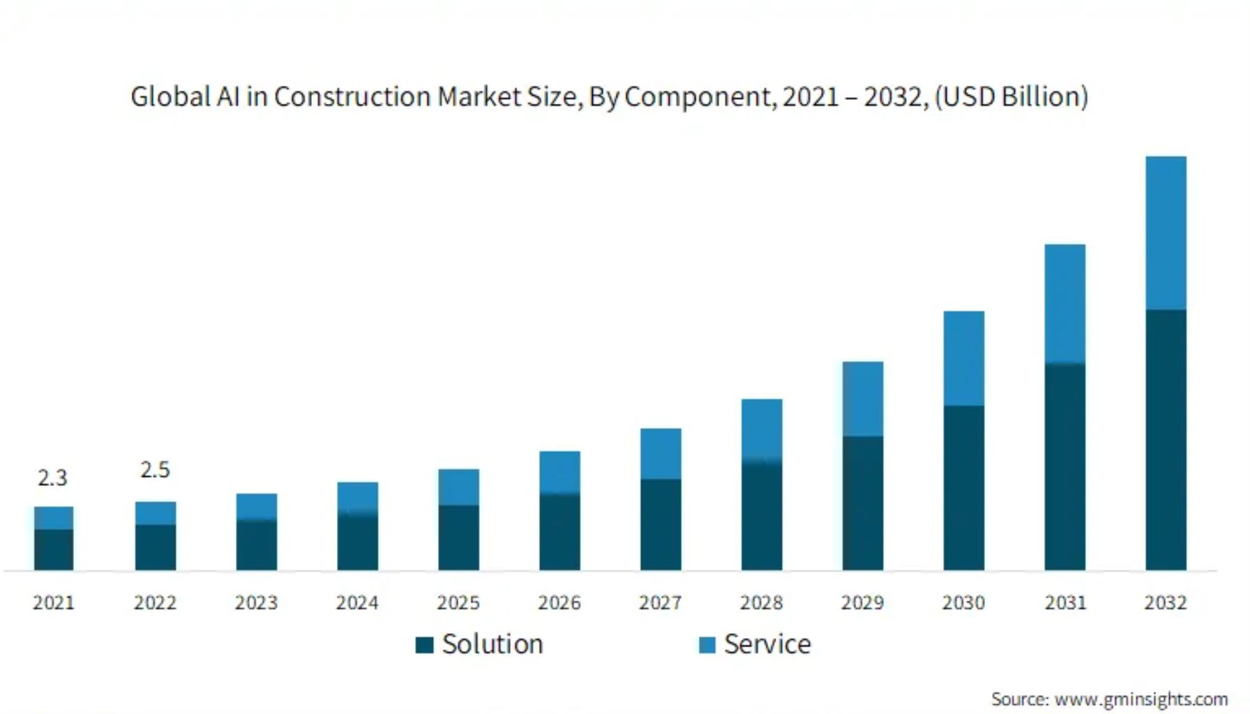 According to a report by Global Market Insights, the market size of AI in construction was valued at over $2.5 billion in 2022 and is expected to grow at a CAGR of 20% by 2032.